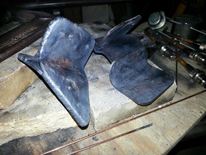 enough of that... Didn't accomplish as much as I wanted to tonight. Thought I would have gotten both of these front brackets welded up and ready for welding onto the fuselage but that didn't happen. Instead, it took a while to grind the pieces to size and then heat and bend the plates that weld onto the two ears of the front sway wire/strut attach brackets. And then there were so many different weld lines on the piece that each time I turned it around I had another weld to make.