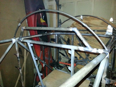 Had the co-pilot's seat belt harness support cut and ready for welding up. Grabbed the jig with the structure in it and brought it out to the garage for welding up. Nothing new to write about tacking and welding up. There was plenty of room to move around the weld for nice weld lines. Now THAT's something new... doesn't happen that often (room to move around the weld).