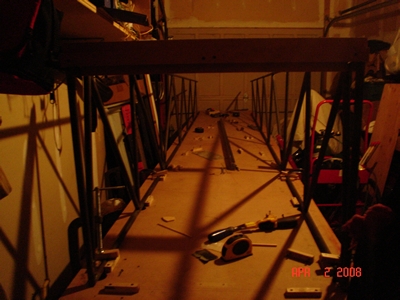As you know, a one car garage isn't a lot of space to be building a 168" x 30" x 25" Skybolt fuselage. I found myself constantly walking side-ways along the length of the table going from one leg adjustment to the next.