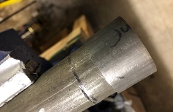 Lower tube notched and clamped in alignment jig