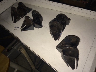 Okay... so now they're at the correct angle but they need to be shaped; an angled wing from the main circular part to the base of the fitting; mark and then grind to a rough-shape.