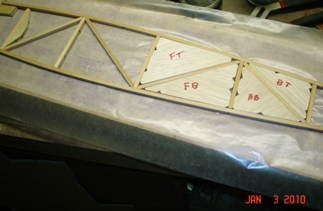 The second set of balsa fillers and capstrips for the other rib at station 2 1/4 were cut tonight. Glue-up next time.