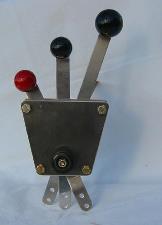 I call and Rock answers the phone. After a few minutes he starts telling me what I can do to get that smoothness in mine... where I have that metal to metal... replace it with pieces of phenolic. I'm thinking, yeah yeah... but then I'm thinking... I'll re-cut all the pieces out of the 6061 that he makes his out of. But then I'm thinking... I'll be spending quite a bit of money, along with the cost of shipping, to re-make these throttles. A quick look on Aircraft Spruce and the cost for materials will add up close to the cost of one quad from Baxter Quadrants... and THEN I'll need to take the time to re-make them. This image is the quad I'm looking at buying. Put the a new face plate and my knobs on it... and it'll look just like the ones I made.