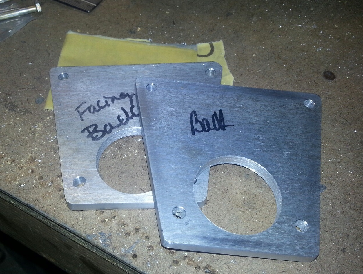 Was just a matter of making sure that the throttle's back plate is facing the correct way before tracing it on the aluminum. Clamped it to the drill press... drilled the four holes for mounting the plate (I think that's one thing that messed me up with the skewed mounting holes... the holes in the throttle's plates and hardware are slightly larger than 3/16inch, I made the mounting holes in the mounting plates 3/16inch... if I'm drilling each of the 3/16inch holes a little to the outside of each of those alignment holes I wouldn't be able to align the bolts into the mounting plate. YEAH... didn't think you followed that.)