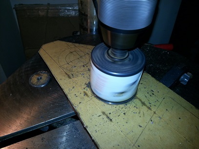 Anyways... used the larger drill bit to drill the holes into the aluminum plate and used a hole saw to cut the hole where the center friction screw goes (the one on the pilot's throttle has an anchor nut that needed a larger opening so I decided to make them identical). The larger hole from the hole saw only gave about 1/8inch of metal along the bottom edge so I extended the bottom another 1/4inch.