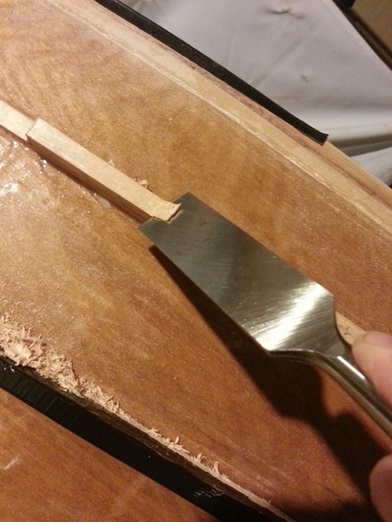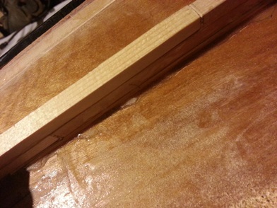 I need to create/make a glue block for the lower edge of the lower transition plys. Also needed to seal the wood underneath the ply pieces and the back-side of the transition ply pieces. Made the glue blocks and used the T-88 epoxy glue to seal the wood.