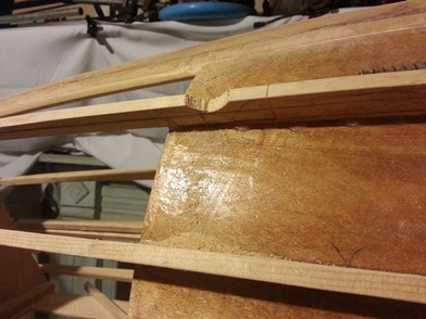 Okay... so I'm back at work on the turtledeck. Yeah... again. The stringers are all glued up and I've got to start notching the ends off the existing ones so that I can fit the new ones up and glue them into place. I've got to stop the madness soon !!!