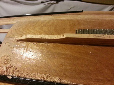 Another turtledeck stringer cut, chopped, notched, filed and in place !