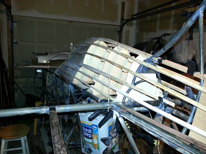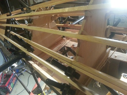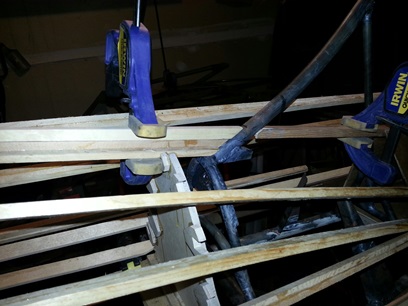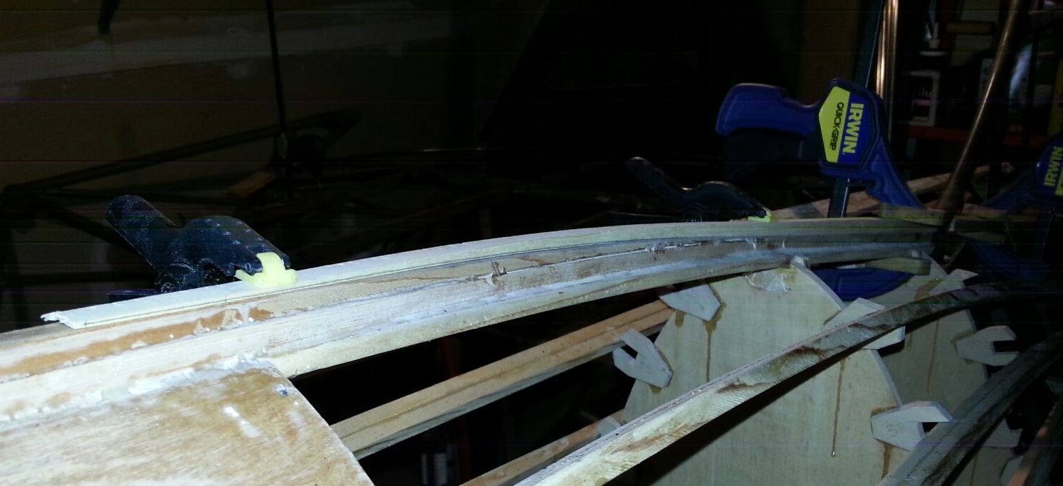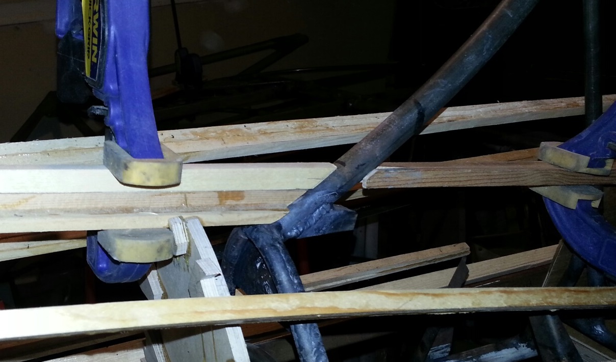 At the end of the night I had all the gussets/stringers completed except the center double-stringer. Didn't have the room for clamping it tonight. So instead of fighting with it I decided to do it the next time I work on it...