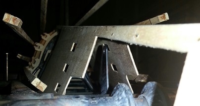 Four more sets of gussets to align, attach and glue... Just a simple matter of getting a few measurements, pulling one into place, apply glue to the back of all eight gussets and clamping into place.