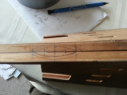 Took a little doing (aka... time) but I got it done. Next I needed to look at how I was going to attach the rear of the stringers to the tail cone. Actually I had a plan; cut a few 5/8" high extra-stringer-material to 1 1/2inch, mark the radius of the stringers, cut the radius on each piece of wood and glue into place. Drill hole through each group of three and lock into place...