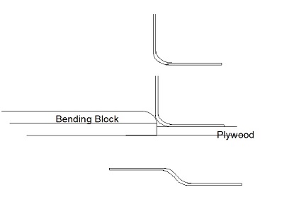 Figuring out the bend on the inside bracket was a little bit of a challenge. Well, not the figuring out of it with the formulas... but figuring out... the bends are so close that they over-lap each other. Usually there is a space between the two bends. On these two... before the one bend totally flatens out (for the 90 degree bend) the other begin. Scratching my head as to how I was going to do it. Then... the light bulb went off. Make the first 90 degree bend... then anneal the aluminum to make it easy to make the second bend. Raise the part with a piece of plywood to the correct height. Clamp the raised part on the plywood. Clamp the bending block and then easily bang the piece over. Worked like a charm. See attached photos...