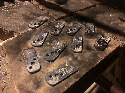 Tabs are now cut to length with the paper patterns burned off... ready to be aligned and welded onto the fuselage.