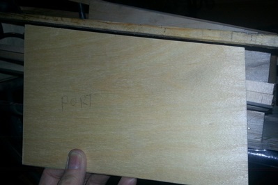 Made the patterns for the sides (both foward and rear sections). Marked and cut the 1/8inch ply. Sanded smooth and thought I was ready to glue it onto the bottom plate... Hold on thar bubbalou !