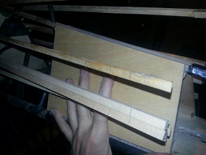 Routed out, filed and sanded (whatever I needed to do to clean them up) the bottom of the 1/4inch build up (seems like I've been here before). Re-glued the spine on the foward tail cone section (wasn't enough pressure on the piece for the T-88 to work). Re-worked the spine and glued again. Had the glue mixed up so I cut an angle on both the existing double-stringers and then added on wood cap strips to make them as long as the other turtledeck stringers. Yup... that's it for tonight; another almost-three hours.