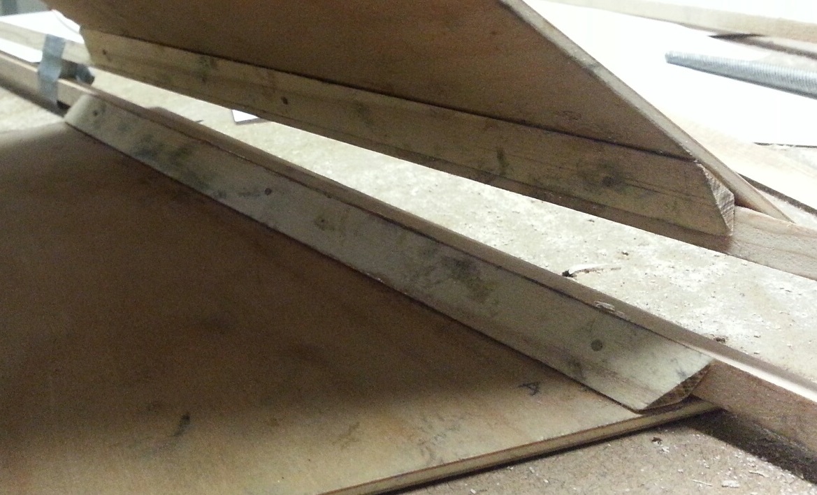 Not sure if glueing the extra thickness of wood onto the forward plate was such a good idea. Tonight... by the time I was done sanding it down there was practically no wood left from wood I just glued onto it the other night. The rear plate was another story. About half of the blocks I glued on were left on there (with a slight angle to them). Ah... didn't spend a lot more time on them and I at least tried to get them as close as possible to being perfect... I at least now know that the forward plate didn't need doing.