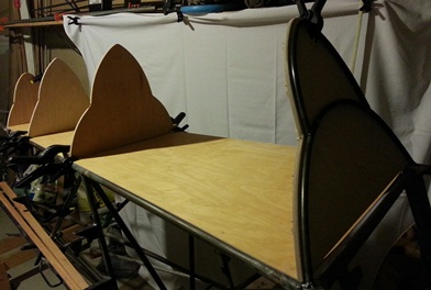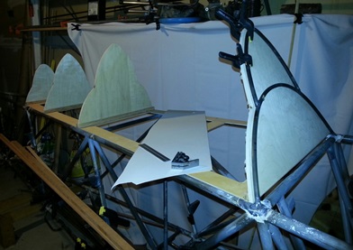 I've re-thought my re-thoughts and I'm moving toward covering only the baggage area with plywood... the rest will be just the stringers over the formers. AND the very back portion of the turtledeck, aft of the most rearward metal tube former, will have 3/8inch 4130 tubing as the stringers.