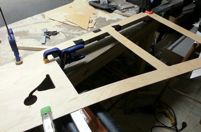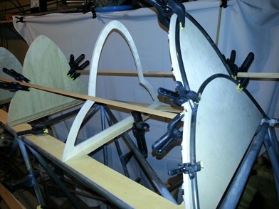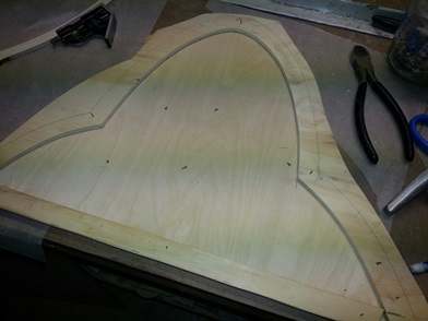Here are a few shots of it... a work in progress and the finished piece on the fuselage. Laying it up on the fuselage I confirmed that I need to have something at the forward edge that will support the ply.