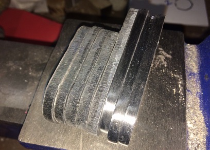 In the image below... Three right have been filed and sanded up to 180 grit. Need to file a few more of the scratches out and sand up to 220 or maybe 400. The other five still have the marks from the grinder on them.