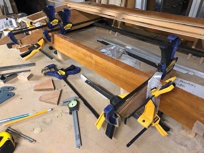 Used the square A LOT over the next few days... Making sure that the notches were square to the horizontal of the bow and level with the rest of the center section, then marking the corner blocks for fitting up to the bow.