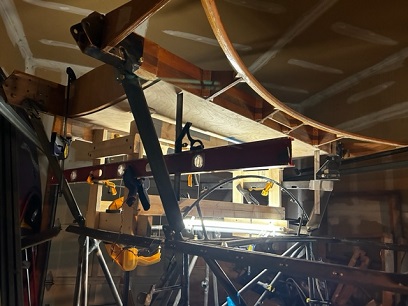 Picking up where we last ended, I was back on finishing/making the rear cabanes. Back to leveling and positioning the Upper Wing Center Section in the right location so that I could get a measurement on it with both of my adjustable cabane hole locating tools. GOT IT!