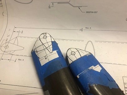 Just drew up a few nice hole cutting patterns on the Delta CAD and have printed these out. Today... or tomorrow I'll tape these onto the fuselage in the correct locations and make the second-round of patterns for that forward section and then fit it up to see how it looks. Maybe attach the sides and bottom skins on to giive me a feel for the finished, flying product.